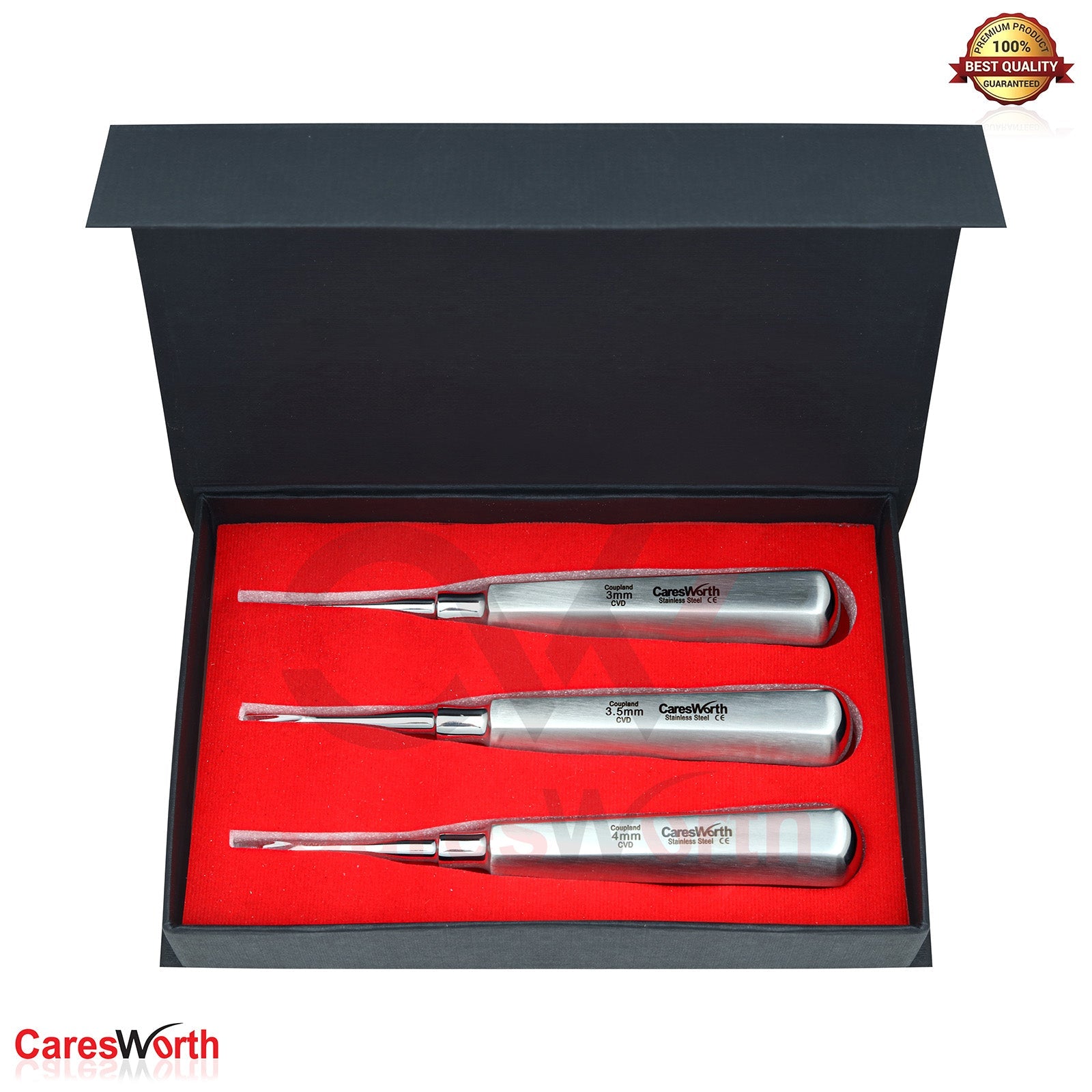 Go to the shopThe Coupland Dental Root Elevator Set (3pcs Curved) is designed for efficient tooth elevation and luxation during extractions. Each elevator features a curved working end that allows controlled force and access to hard-to-reach areas, making them ideal for loosening teeth and separating the periodontal ligament.
