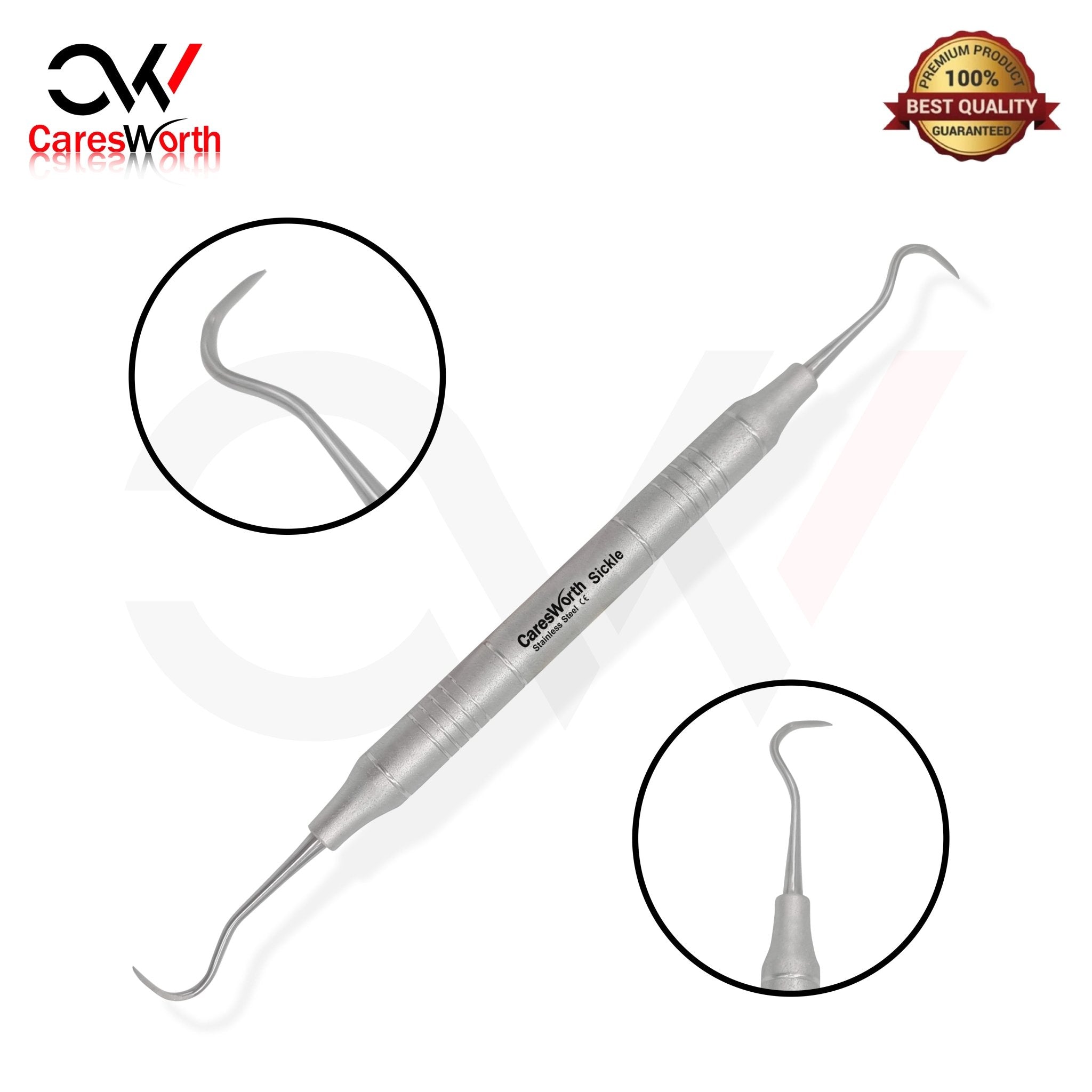 Go to the shopAt CaresWorth Dental, we built the H6/H7 Sickle Scaler to make dental cleanings smoother and more efficient for dentists and hygienists. This tool is specifically designed to remove plaque, tartar, and buildup from the teeth, ensuring a cleaner and healthier smile. With sharp, curved tips and a double-ended design, it’s a go-to tool for everyday dental care.