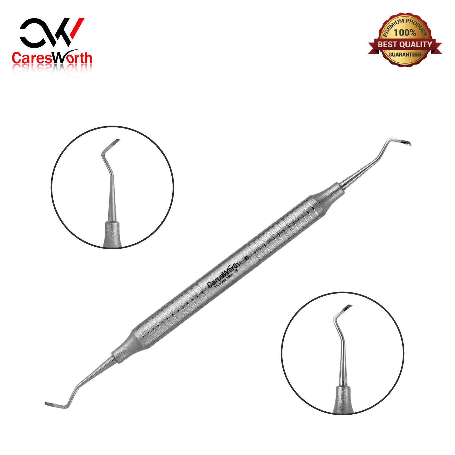 At CaresWorth Dental, we made the Hatchet/Chisel Cutting Instrument Hatchet 51/52, MT 79/80, MT 77/78 & 8/9 Binangle Chisel to help dentists clean teeth effectively and safely. It’s part of the Gracey Curettes family, which means it’s designed for specific areas of the mouth, allowing for deep cleaning without harming healthy gums.